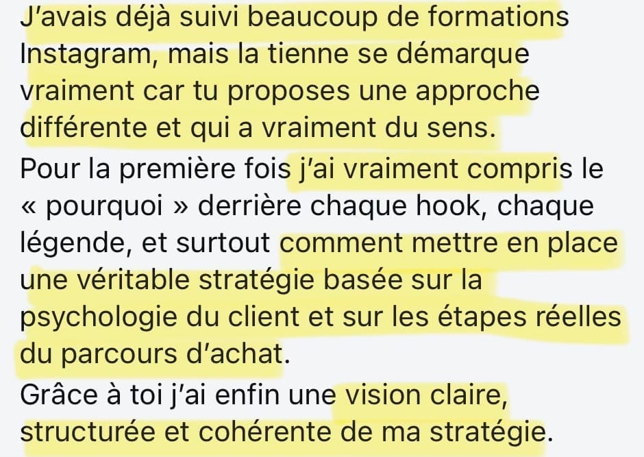 Tu as une direction claire, logique et structurée pour progresser avec une vraie stratégie pour attirer tes prospects et les convertir naturellement en clients.
